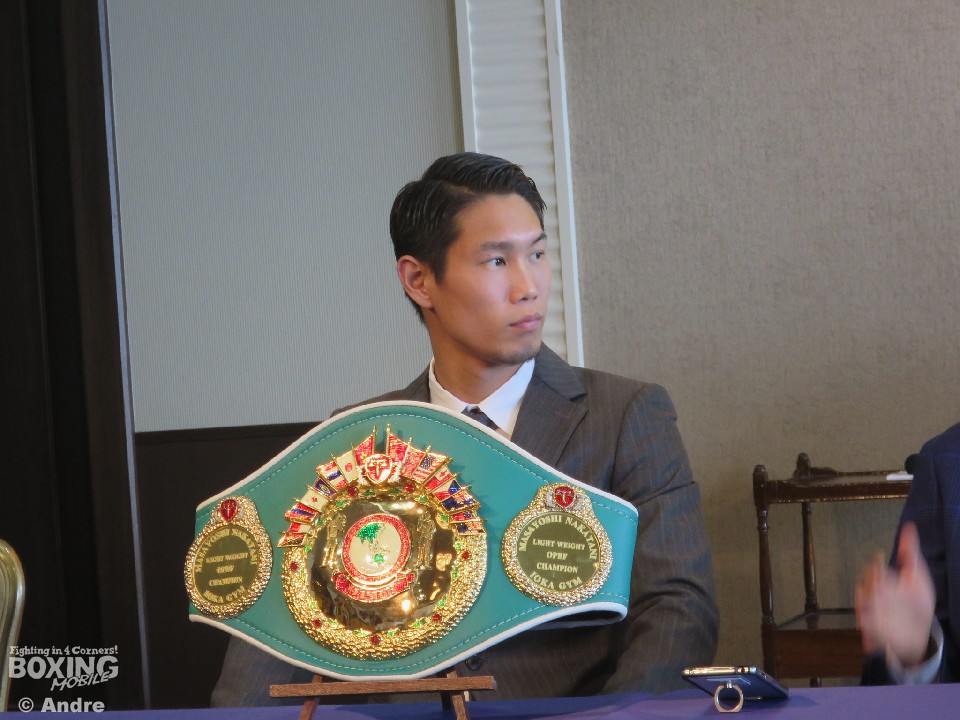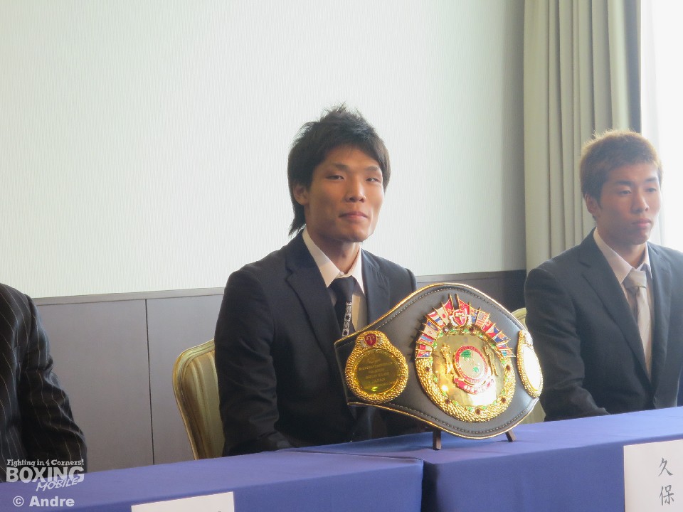 セミファイナルで実に6度目の防衛戦で同級11位のアラン・タニャダ(比)を迎える中谷は「この試合にしっかり勝って世界につながる内容をみせたいです」と挨拶。「先のことを考えると足元をすくわれるので、しっかり次の試合に向けて練習したい」と落ち着いた様子で語った。この試合どのように戦うか質問されると「ナイショです(笑)」と集まった報道陣を笑わる余裕も見せた。