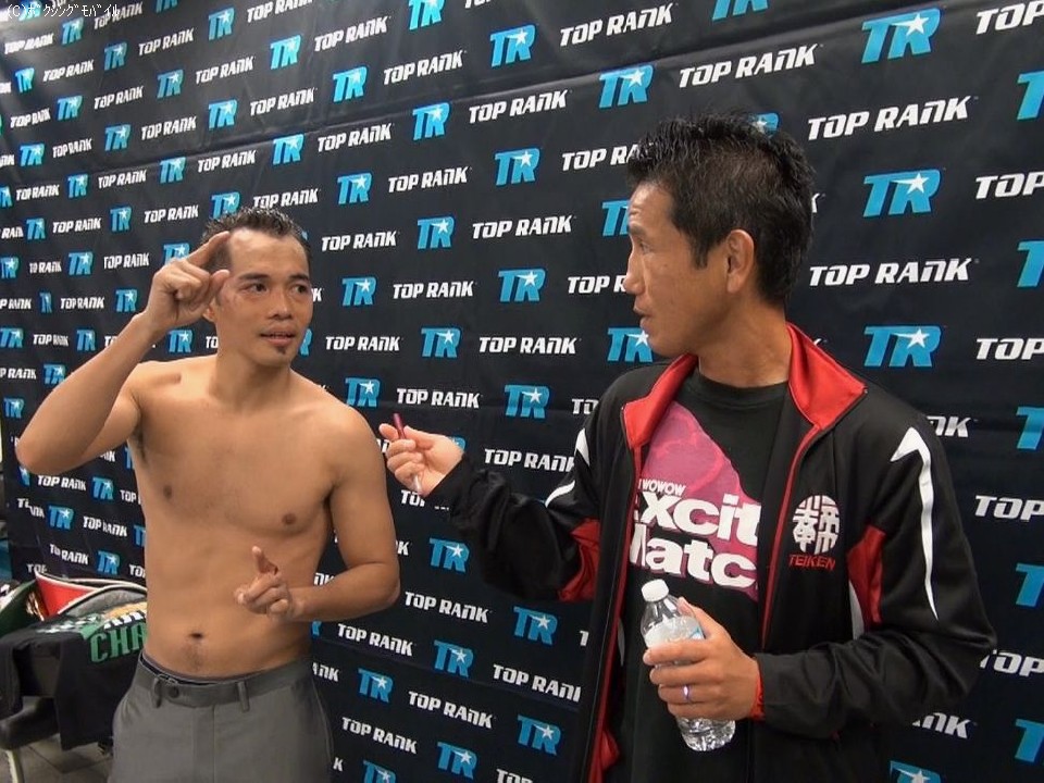 9ラウンドに右ストレートでTKO勝ちを収めたドネアに、西岡利晃(帝拳)の印象を尋ねると「西岡選手はディフェンシブで難しい相手だった。本当に素晴らしい選手であることは間違いなくリスペクトしている気持ちは今も変わらない。怪我などしていないか心配している。」と話すと「こちらの作戦のほうが上だったということ。作戦どおり進んだ。勝てて本当にうれしい。」と試合を振り返るとホッとした表情を浮かべた。