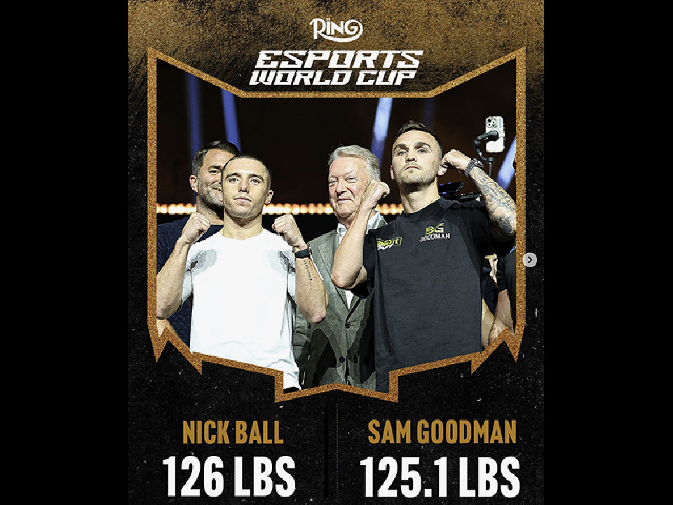WBA世界フェザー級王者ニック・ボール(28=英)が、WBA世界同級5位サム・グッドマン(26=オーストラリア)の挑戦を受ける。日本時間の17日、サウジアラビアのリヤドで開催されているeスポーツW杯のイベントとザ・リングのコラボ興行で前日計量を行った。