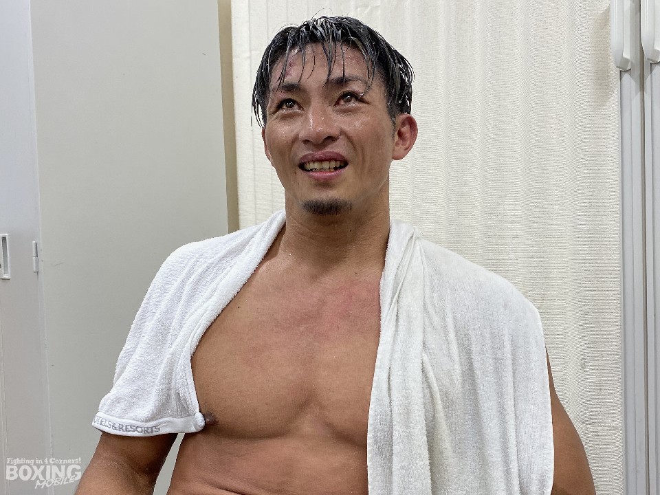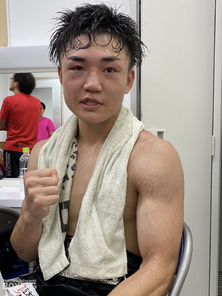 試合後、取材に応じた磯谷は、「初回が終わってから『仕留めるぞ!』と言われてラッシュをかけたが倒れなくて、4ラウンドにも仕掛けたが…。この時に拳を痛めた。途中からポイントを取ることに切り替えた。今日は8ラウンド戦えたことが収穫。仕留め切れなかった時に、どうやって立て直すのかが課題」と、大差の判定勝ちにも満足することはなかった。