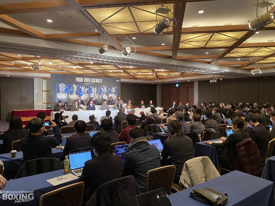 世界戦2試合を含むバンタム級の注目カードが3試合セットされた「Prime Video Boxing 11」の合同会見が22日、東京ドームホテルで行われ、WBC世界王者の中谷潤人(27=M.T)と挑戦者のダビド・クエジャル(メ)、WBA世界王者の堤聖也(29=角海老宝石)と挑戦者で世界2階級制覇を目指す比嘉大吾(29=志成)、前WBO世界王者のジェーソン・モロニー(34=豪)と那須川天心(26=帝拳)が勢揃いした。