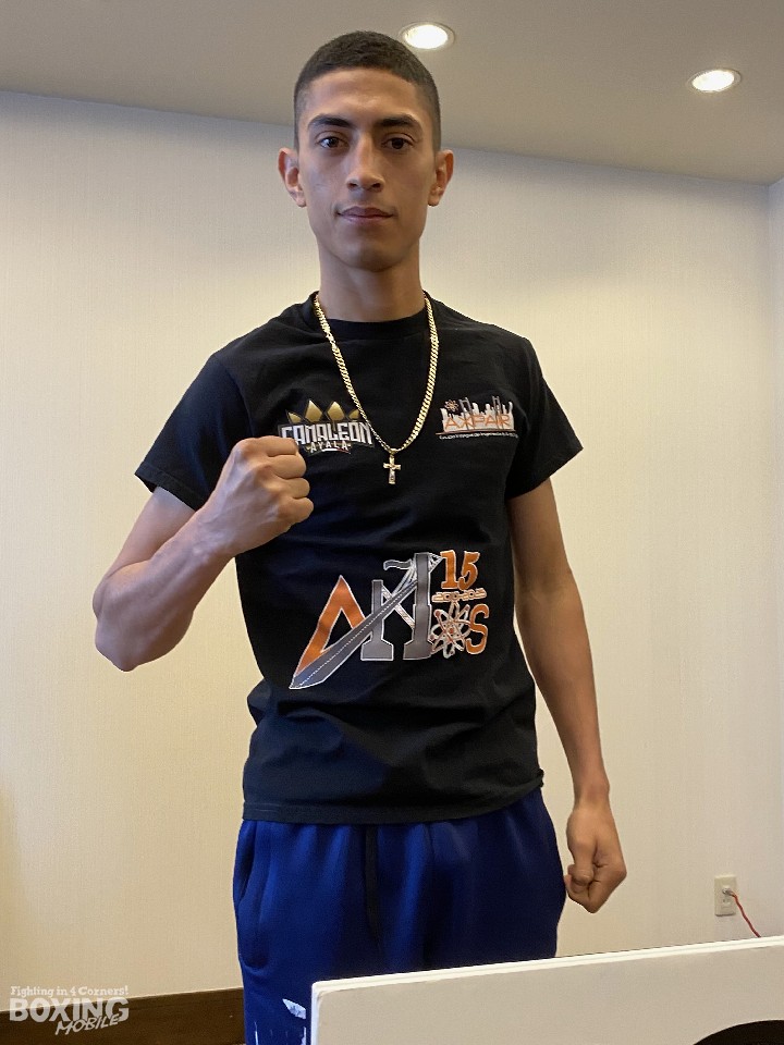 洋服を着たまま、秤に乗ったアヤラは、54.0kgでクリアした。落ち着いた表情を見せており、決戦に向けて気持ちを高めていた。