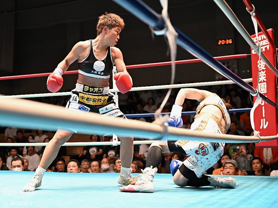 日本アトム級8位の吉田里穂(21=RISE)とIBF(国際ボクシング連盟)同級11位の鵜川菜央(28=三迫)が、空位のWBOアジアパシフィック・アトム級王座を懸けて拳を交えた。