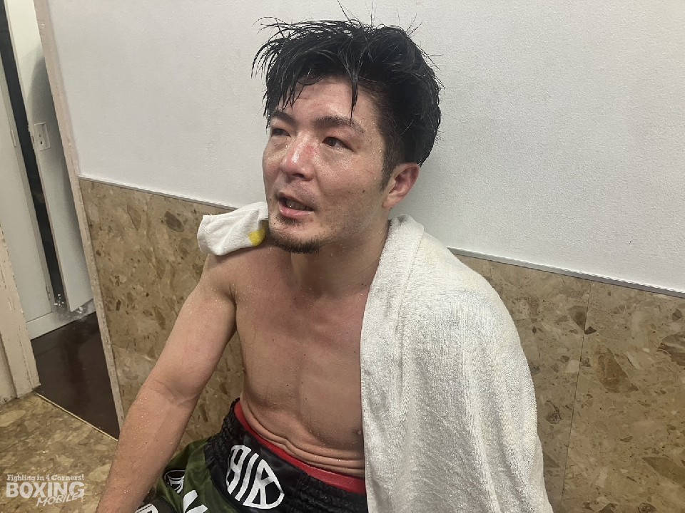 試合後の汗もそのままに取材に応じた左右田は、「相手が上手くてボクシングの幅が広かった」と、拳を交えた豊嶋選手を評した。