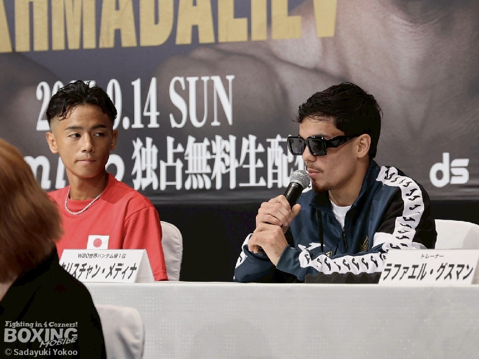 トリプル世界戦が開催される「NTTドコモ presents Lemino BOXING」のセミファイナルで、3度目の王座防衛に臨むWBO世界バンタム級王者の武居由樹(29=大橋)と同級1位のクリスチャン・メディナ・ヒメネス(25=メキシコ)が12日、名古屋市内のホテルで会見を行い、それぞれに意気込みを語った。