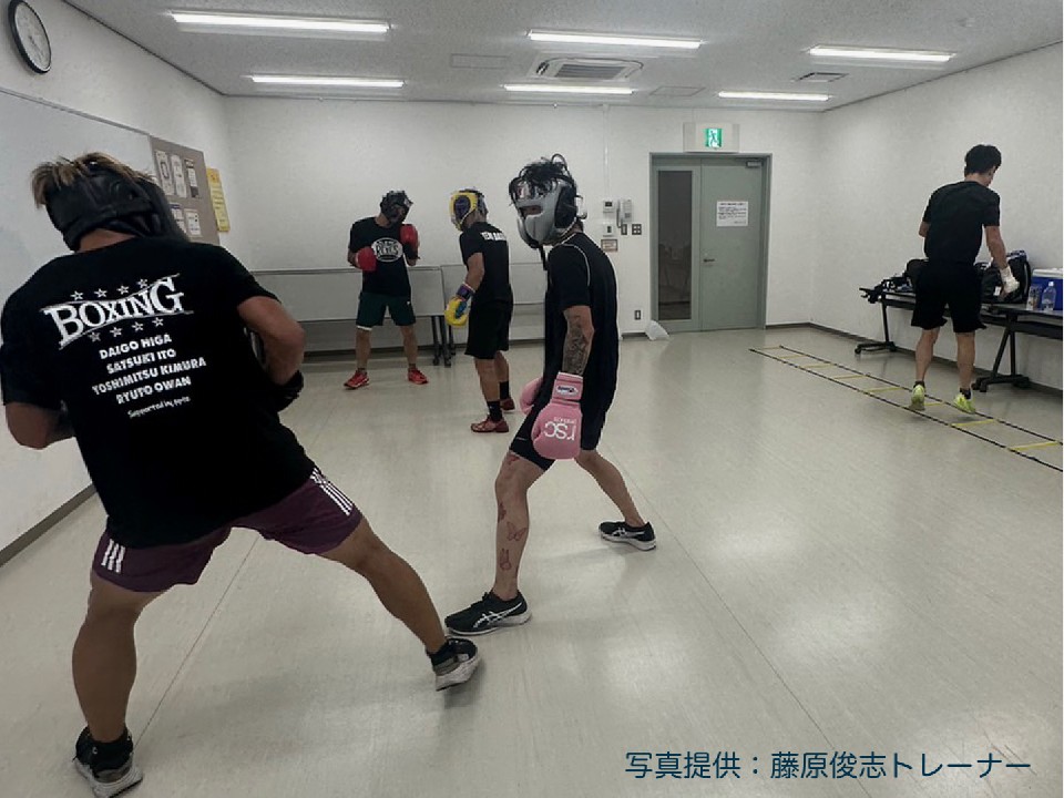 キャンプ中は、野木丈司トレーナーがメニューを作成。20日は、早朝6時から約6キロのロードワーク。10時半からは250メートルのクロスカントリーコース8本、下り坂のコースで100メートルダッシュを5本消化するなど、身体をいじめ抜いている。15時からの3部練習では、マスボクシングなど実戦練習も組まれている。