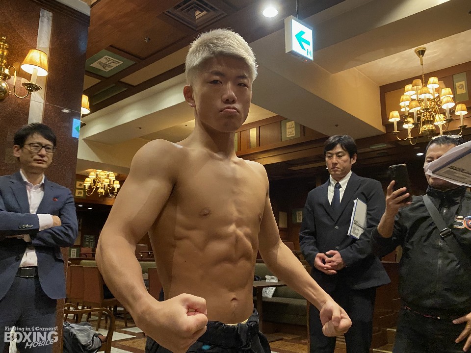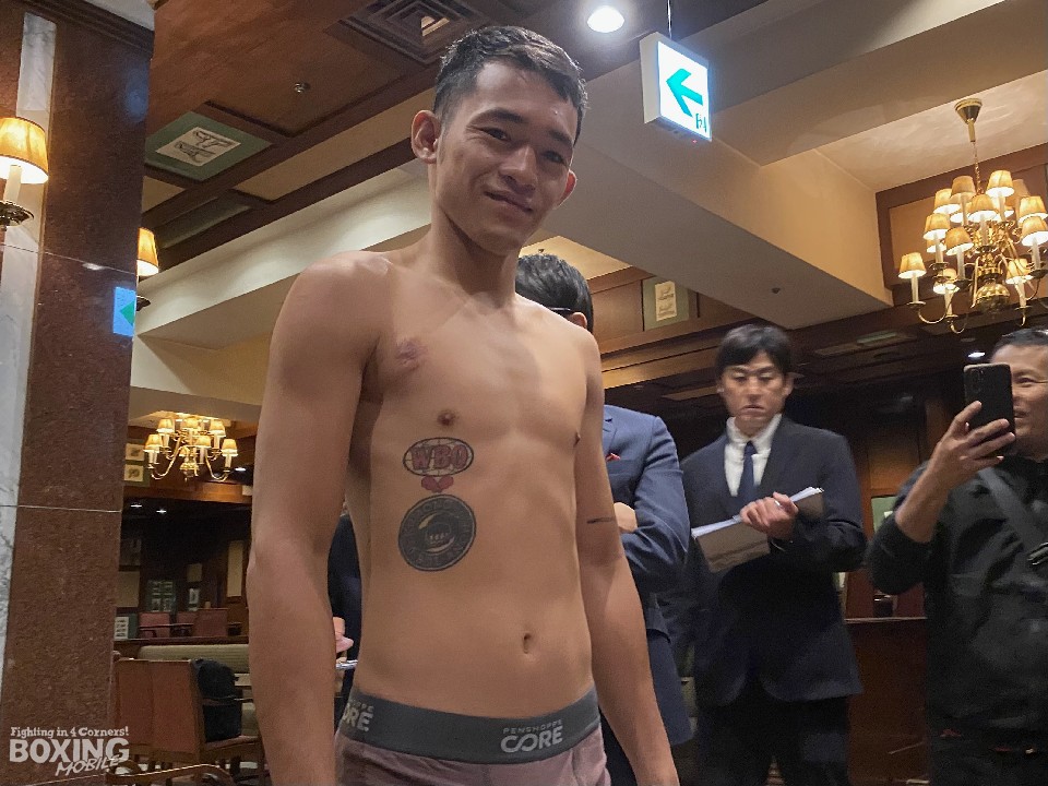 IBF(国際ボクシング連盟)ミニマム級タイトルマッチ、王者の重岡銀次朗(24=ワタナベ)対同級6位のジェイク・アンパロ(26=比)の当日計量が31日、名古屋市内のホテルで行われた。