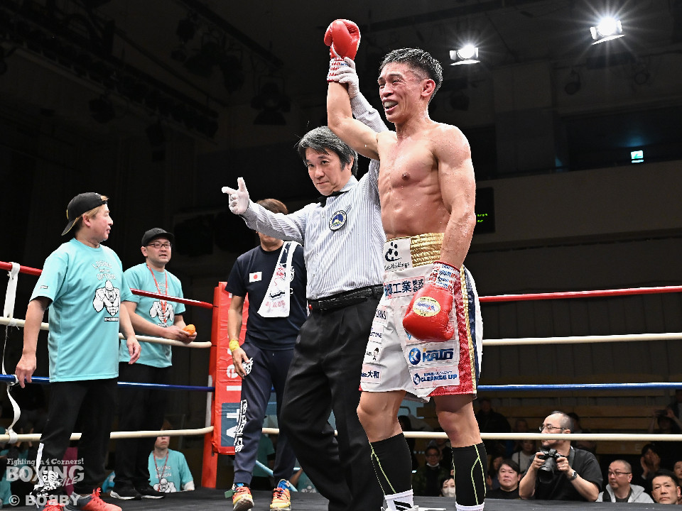 ランカーの力を示した中川は、「ジャブで目をカットできたが、相手が打ち終わりを狙っているのが分かったので、倒しにはいかず、ジワジワ攻めた。勝つことができて良かった」と話すと、「34歳になるが、年齢的な衰えはない」と言葉に力を込めた。