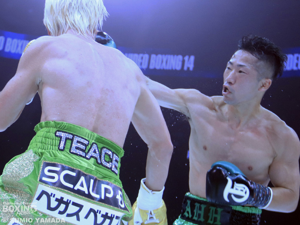 この日、早朝からテレビ出演があり、一睡もしていないという新王者。「リーチが思っていたより長く、ここでも届くのかと。3ラウンドから作戦を変えて、感情的にならず、淡々と自分のボクシングができたことが勝因」と、36分間の総力戦を冷静に分析した。