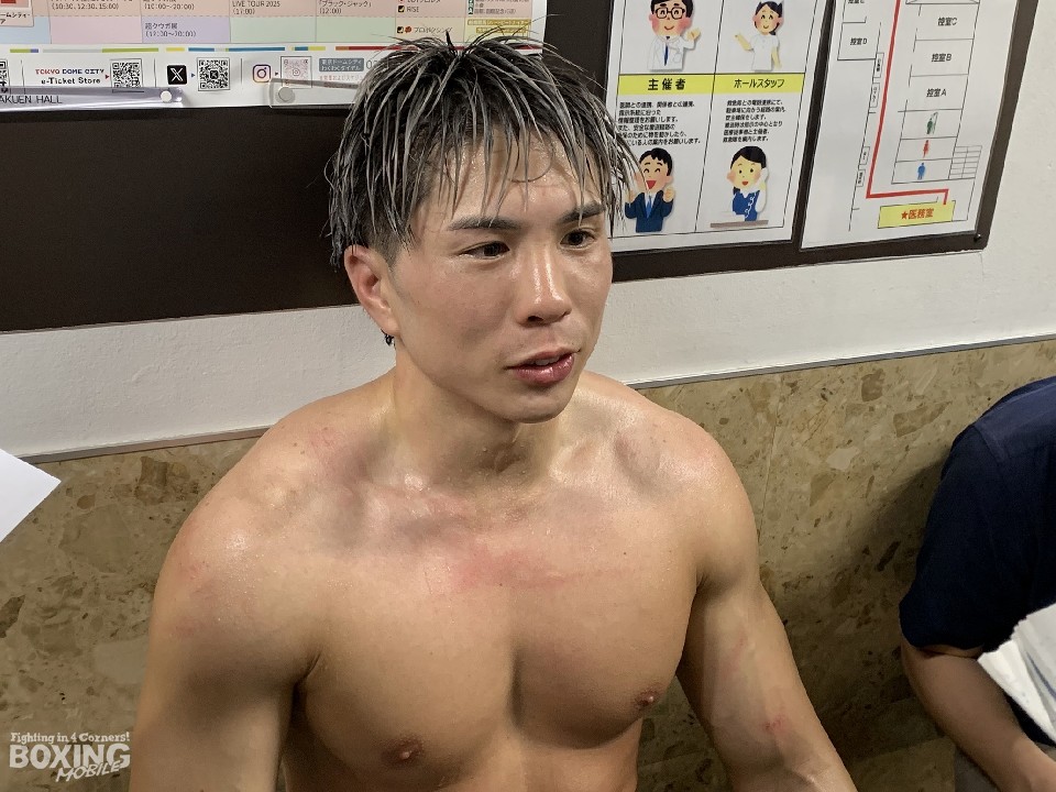 大学時代はバスケットボールに打ち込み、2020年に地元ニューヨークでボクシングを始めて、アマチュアでは3勝1敗の戦績。日本に来たのは、米軍横田基地への配属がきっかけだったという。「横田に来た時に、リック吉村会長の噂を聞いて、自分の境遇と重なる部分もあり(リック吉村会長も現役時代、米軍基地に勤務)ジムの門を叩きました。家族やジムのファミリーに支えられて、この勝利があり、その気持ちを思い出し涙が出た」と自身の境遇や、サポートしてくれた方々への感謝を口にした。