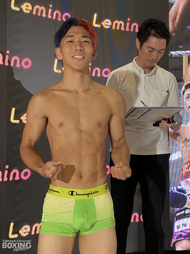 大阪から乗り込んできた平井は、バンタム級リミットを200g下回る53.3kgでクリアした。「赤コーナーと青コーナーを意識して」と、髪の毛を赤と青でカラーリングして気合