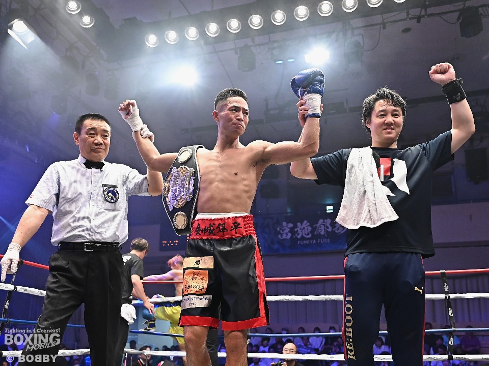 日本ユース・バンタム級王座決定戦の初回、サウスポーの金城は距離を詰めてくる平井に対し、前の手で距離を取りながら左ストレートを好打、ペースを掌握した。2回、平井は揺さぶりをかけながら、距離を潰そうとするものの、金城は左アッパーとボディワークで追撃を遮断。3回に入ると、距離を掴んだ金城が右フックでダウンを奪った。打ち合いに持ち込みたい平井だが、相手のテクニックに上手く展開を作れず。金城は距離を維持したまま、7回には左ストレートで腰を落とさせ、連打で平井にダメージを溜めると、最終8回に、ワンツーから連打で2度目のダウンを奪った。ノーカウントでレフェリーストップとなり、金城が日本ユース王座を勝ち取った。