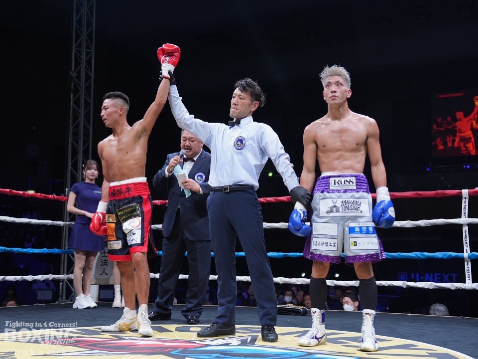 一方、5戦目で初黒星を喫した具志堅は「(金城選手は)ジャブが上手くて、距離が遠く捌かれてしまった。どう戦おうかと考えすぎてしまい、手数が少なくなった」と唇を噛み締めた。それでも「ここから這い上がり、最後はチャンピオンになりますよ」と巻き返しを誓った。
