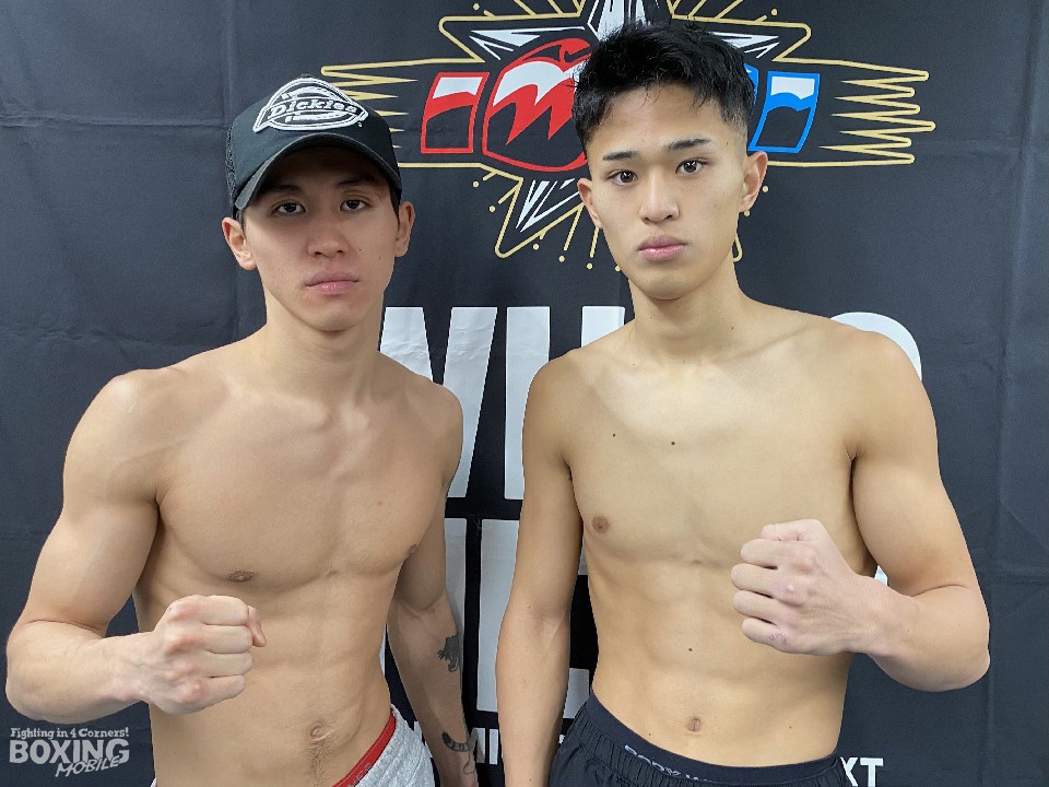 スーパーフライ級5回戦では、高橋秀太(23=角海老宝石)と西軍MVPの村田碧(20=松田)が激突する。高橋は100gアンダーの52.0kg、村田は300gアンダーの51.8kgで計量を終えた。