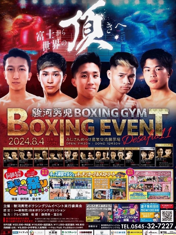 駿河男児ボクシングジムは17日、静岡県富士市内のジムで記者会見を開き、「駿河男児Desafio11 ふじのくに祭」の組み合わせを発表した。
