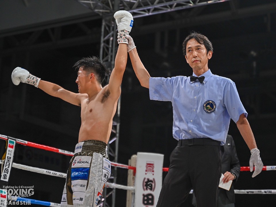 中盤、ワンツー連打でカプロイをロープに押し込むと、怒涛の連打でレフェリーストップを呼び込んでOPBF、WBO-アジアパシフィックランカーを撃破。ランキング入りが濃厚となった。