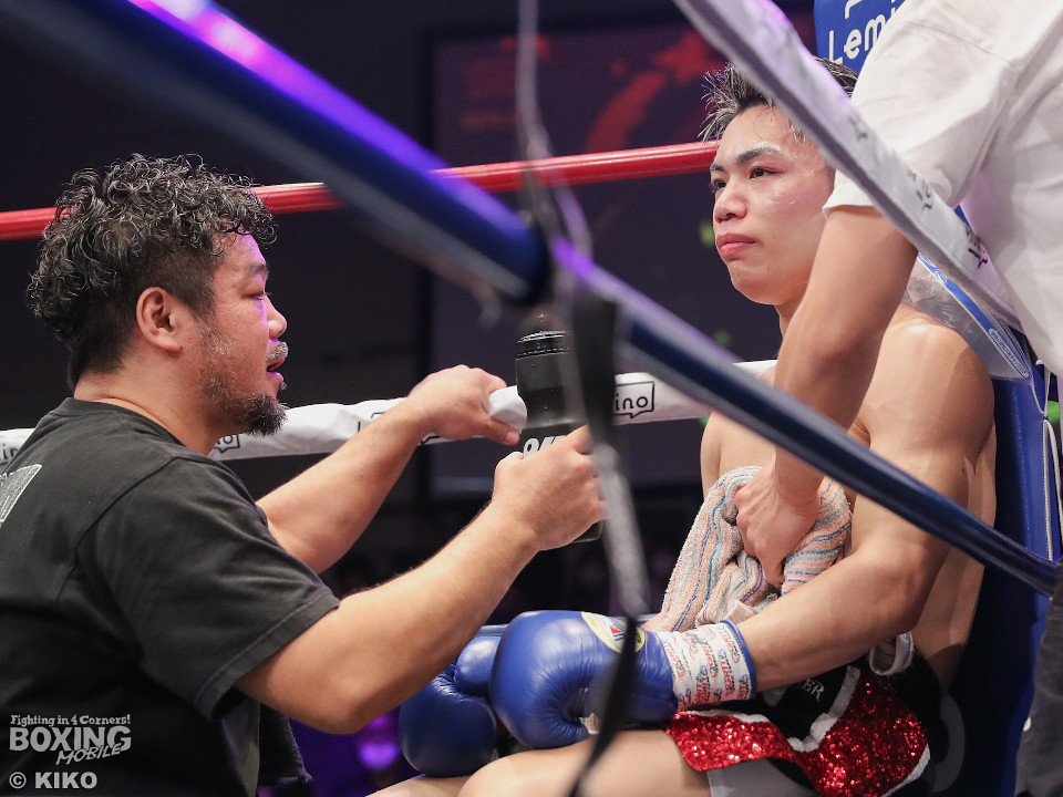 サウスポー同士による一戦は、木村がプレスをかけて左ボディストレートを痛打。相手の動きを止めると、左ボディストレートで痛烈なダウンを演出。竹本に10カウントを聞かせた。