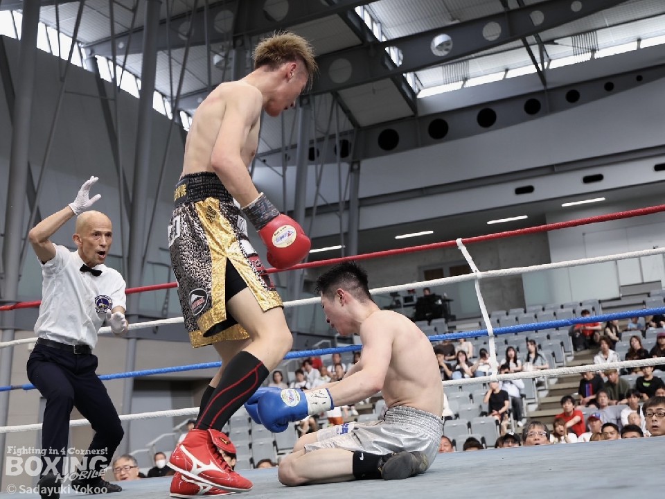 松岡の右ストレートが中島の顔面をとらえた3回以降、優勢を印象付けると、4回と5回も距離を保ちながら、的確なヒットを重ねた。中島はガードを固めながら、左右の強振で反撃を試みたが、ポイントを返すには至らず。迎えた最終の6回、中島が前に出てプレスをかけるも、松岡は終了間際、左ショートフックでダウンを奪い、試合を決定づけた。