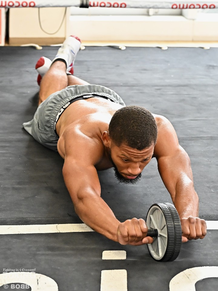 ここ数年、海外選手の公開練習は、軽めで短時間というスタイルが一般的だが、ブライアンは縄跳び、シャドーボクシング、ミット打ち、サンドバッグ打ちを各2ラウンドずつ実施し、それに腹筋ローラーを用いた腹筋トレーニングと30分以上の充実したメニューを消化した。