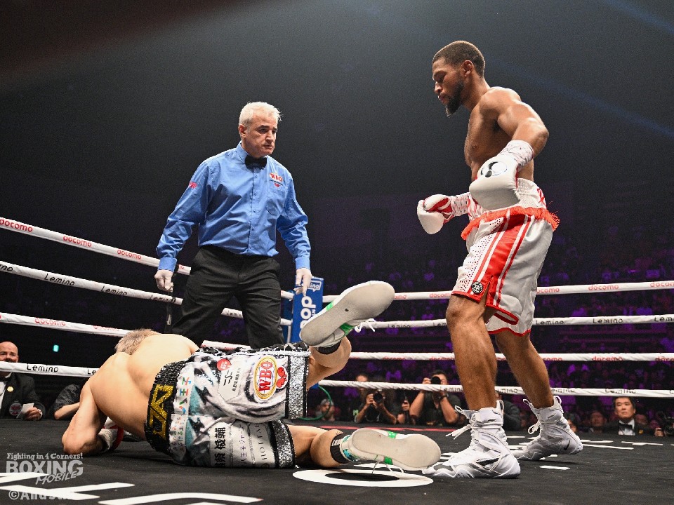 初回にノーマンが2度ダウンを奪って始まったビッグマッチ。佐々木も左フックと右ストレートに体重を乗せたが、ノーマンのディフェンスを崩せず。5回にノーマンの左フックが炸裂。佐々木は大の字にダウン。レフェリーが試合を止めた。
