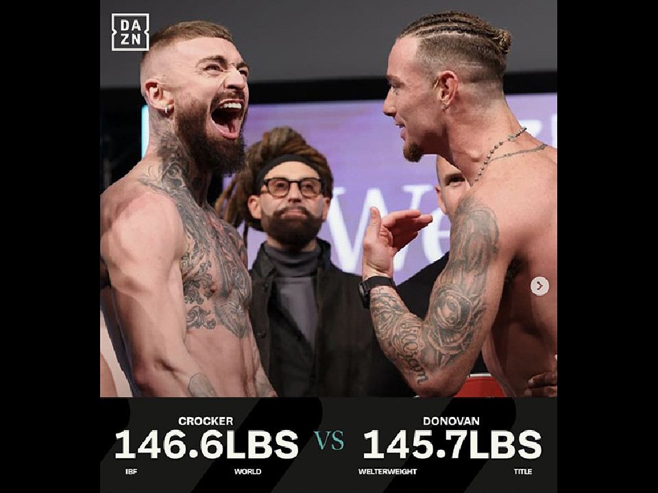 ジャロン・エニス(28=米)が返上したIBF世界ウェルター級の決定戦として、IBF世界同級1位ルイス・クロッカー(28=英)と、IBF世界3位パディ・ドノバン(26=アイルランド)が、ダイレクトリマッチで対戦。日本時間の13日、英国・ベルファストで前日計量が行われた。