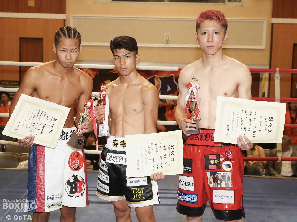 西部日本新人王決勝戦が21日、ホテル クラウンパレス北九州ダイヤモンドホールで開催された「北九州第一ライオンズクラブ Presents 西部日本新人王決勝戦 ORIO BOXING FIGHT.14」で行われ、試合後に表彰式と三賞が発表された。