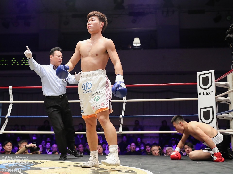 中国の刺客に何もさせず圧勝した堀池は「前回は判定勝ちだったので、今回はよりKOを意識した。相手のパンチをもらわずに、自分のパンチを上手く当てることができた。相手は打たれ強いと思ったので、強弱のタイミングをずらして、隙を狙っていこうと思った」と、KOに繋げるまでの戦略を明かし、結果に対して納得の表情を浮かべた。