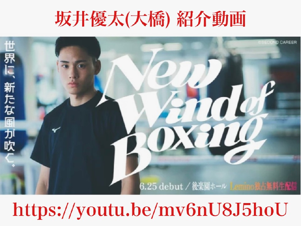 アンダーカードも見逃せない! 大橋ジムに所属した大橋蓮(22)、 田中空(23)、 田中将吾(22)、 坂井優太(19)らのプロデビュー戦が行われる。なかでも坂井は、高校6冠、世界ユース選手権優勝という輝かしいアマチュア戦績を誇る高卒ルーキーで、ボクシング界に新しい風を吹かせる存在として注目を集めている。