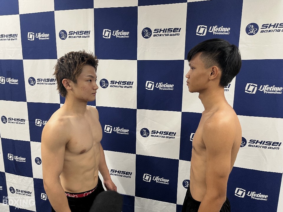 「Life Time Boxing Fights 21」で、揃ってプロデビュー戦を迎える吉良大弥(21=志成)と由良謙神(22=志成)が26日、都内の日本ボクシングコミッション(JBC)事務局で、前日計量に臨んだ。