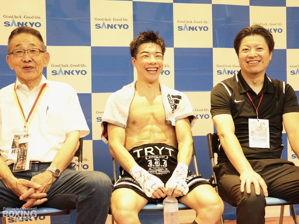 町田主計トレーナーは、「100点の内容。最近の中国人選手は強く警戒していたが、ジャブの差し合い、ボディを見て、これはいけると思った」と労った。