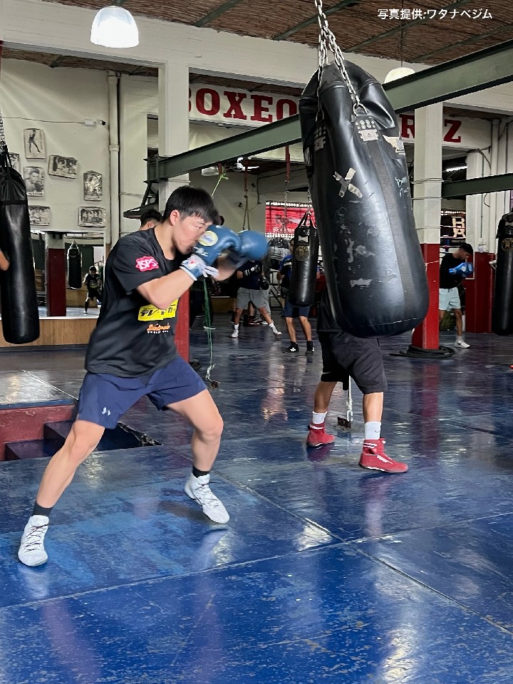 午前はフリアン・マグダレーノジム(サウル・カネロ・アルバレスを育てたエディ・レイノソトレーナーがオーナー)、午後はアレナ・コリセオジム(アルバレスの兄で元WBA世界ウェルター級暫定王者のリゴベルト・アルバレスがオーナー)で、たっぷりと汗を流している。