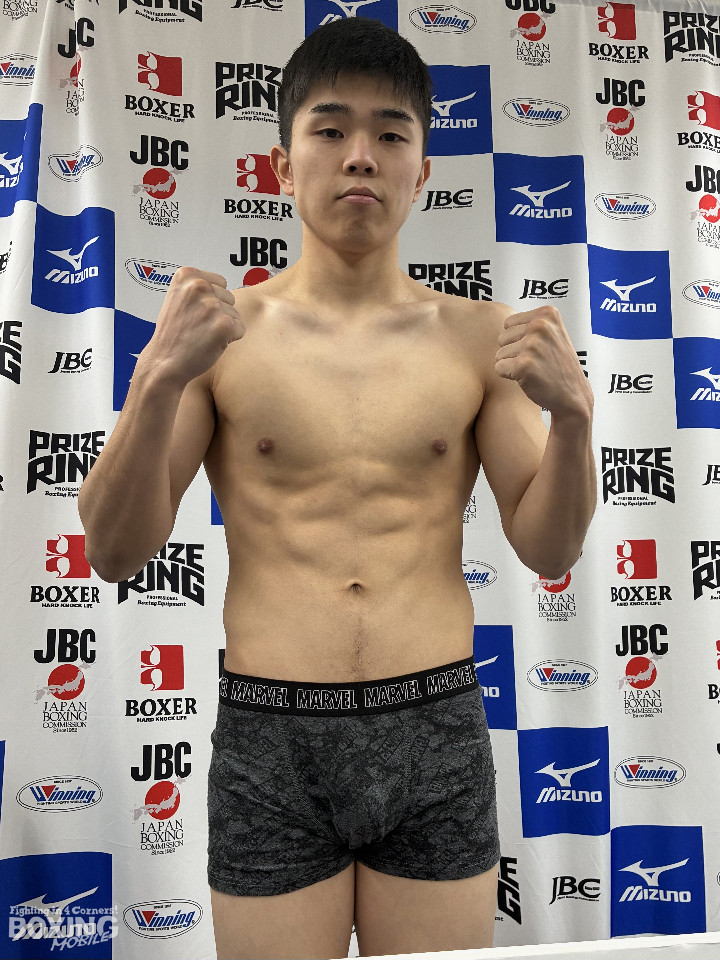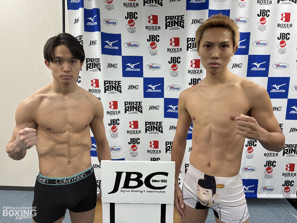 ミニマム級5回戦では、京屋勇気(28=ワタナベ)と辻永久(19=KWORLD3)が対戦する。京屋は47.6s、辻は100gアンダーの47.5sでクリアした。