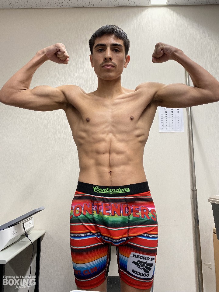 WBC(世界ボクシング評議会)世界バンタム級王者の中谷潤人(26=M.T)のチームメイト、エイドリアン・アルバラード(25=米)が17日、都内の日本ボクシングコミッション本部事務局で前日計量に臨んだ。
