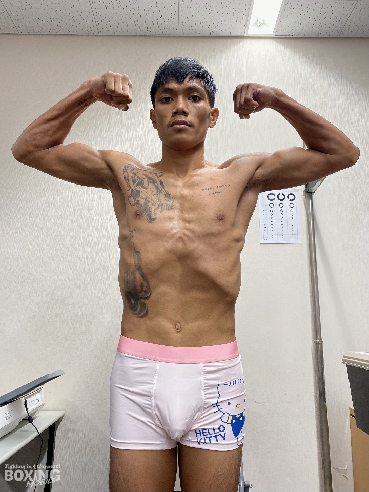 幼少期から中谷とWBO(世界ボクシング機構)フライ級王者のアンソニー・オラスクアガ(25=米)と一緒に練習してきたアルバラード。計量会場ではやや緊張していたようだが、「日本で初めての試合で、とても興奮している」と明日の心境を語った。