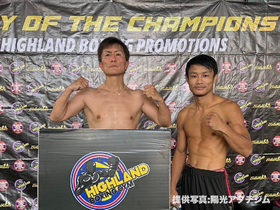 WBFアジアフライ級王座決定戦が行われるタイの首都バンコクで21日、日本から遠征している恵良敏彦(50=陽光アダチ)とエクタワン・クルンテープトンブリ(35=タイ)が、前日計量に臨み、両者ともに50.8kgでクリアした。
