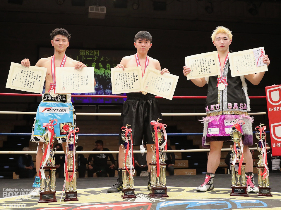技能賞はライトフライ級の加藤准也(20=三谷大和)が受賞した。サウスポーの加藤は、出入りを生かした左ストレートを軸に試合をコントロール。足を使いながら巧みにさばき、片渕龍太(21=KG大和)に完勝して技能賞を手にした。