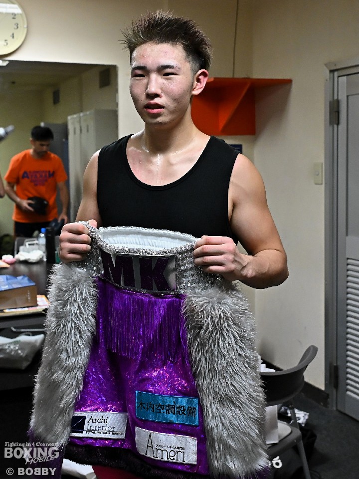 フルマークの判定勝ちを飾った佐々木だが、「くそーっ!」とKO勝ちを逃し、悔しい表情を浮かべた。「怪我が完治して思い切り打てる分、力んでしまった。相手のリーチが長くて距離が遠く、左ボディが打てなかった」と、反省の弁が口を突いた。