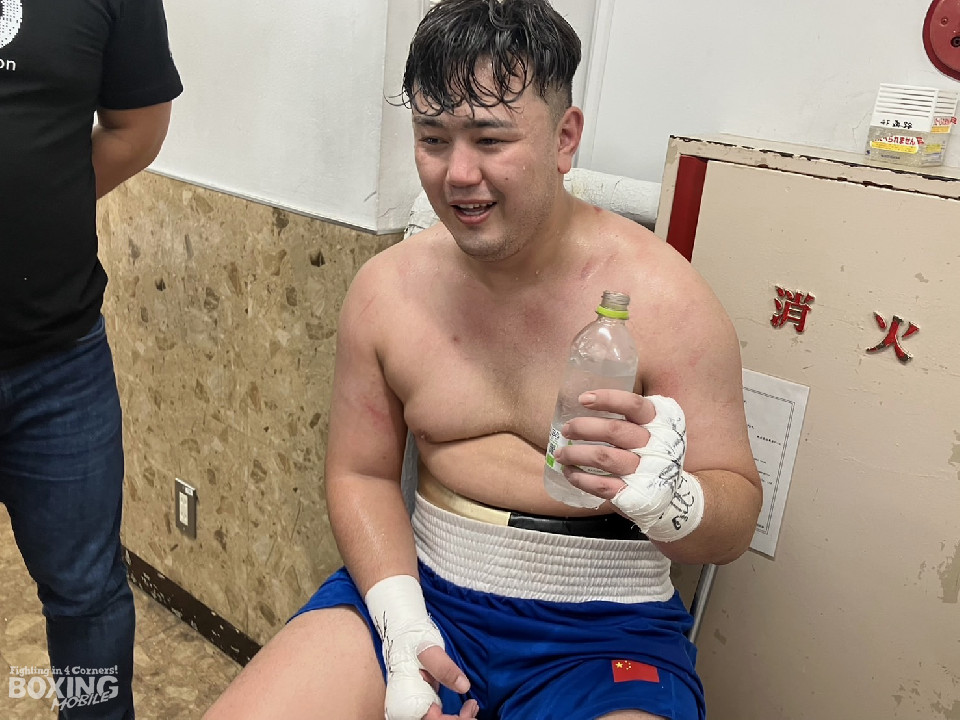 マハンハイリー・ヌールタイ(24=中国)と松田尚之(29=ARITOMI)の対戦は、初回は松田が左ボディを決めたが、2回以降は、マハンハイリーがプレスを強めて上下に打ち分け攻勢。必死に打ち返す松田を振り切って勝利した。
