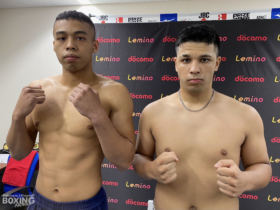 別ブロックの準決勝は、大沼ケン(20=角海老宝石)と中野ムーサ(20=DANGAN)の若きヘビー級対決。大沼は96.6s、中野は103.4sで計量をパスし、ツーショット撮影では固い握手を交わした。