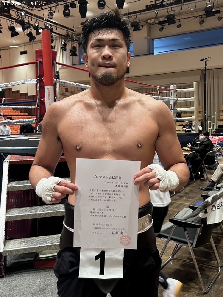 A級プロテストに合格した森脇は、「ボクシングを初めたアマチュア時代から駿台学園高校・法政大学・自衛隊体育学校時代と何かあれば自由にワールドスポーツで勝手にに練習させてもらってました。自分自身のアマチュア時代に知り合ったアメリカのトレーナーなどに連絡して、アメリカデビューを模索している時も『行動にマイナスはないし、人生の資産になる。1人でアメリカ行くなんてすごい、可能な限り挑戦した方が良い』と齊田会長は常に応援してくれ、相談にも乗ってくれてました。海外で練習している時も『日本のボクシング界もチャンスあるよ』と気にかけてくれてました」と、ワールドスポーツジムの齊田竜也会長に感謝した。