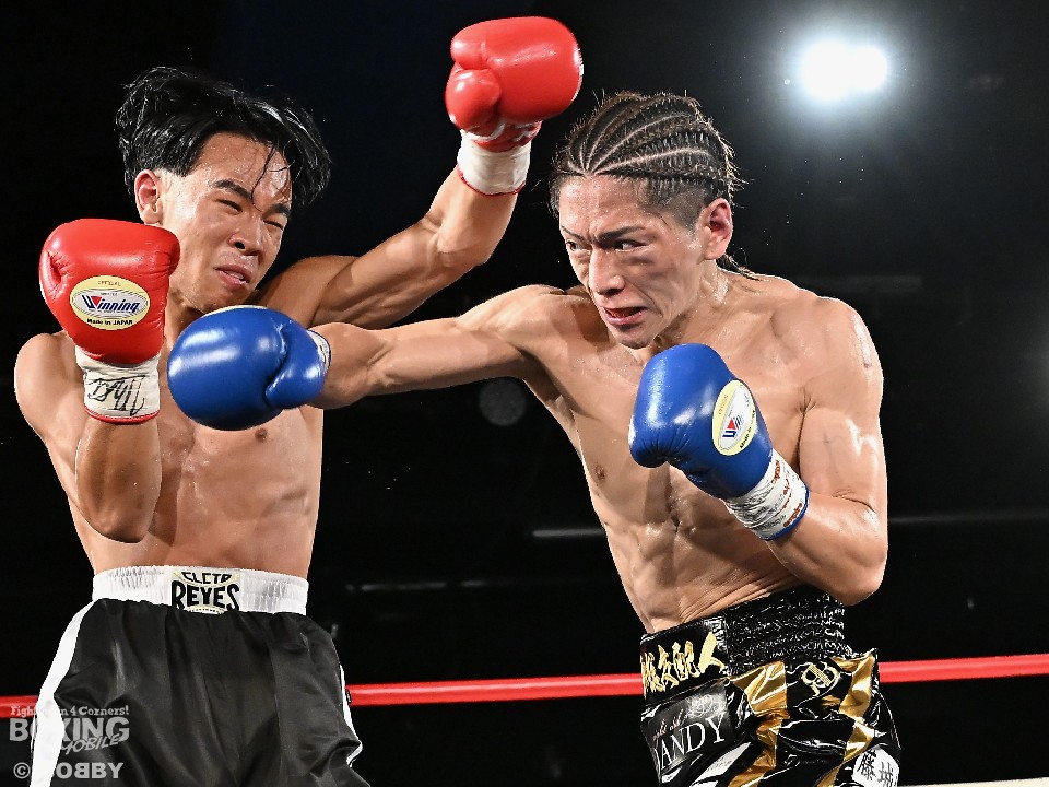 大和が距離を詰めてジャブとワンツーで先制。福元はリングを広く使いジャブを返した。大和はガードを固めながら右フックを強振すると、気持ちを切らさず、最後まで積極的に攻めて勝利を掴んだ。