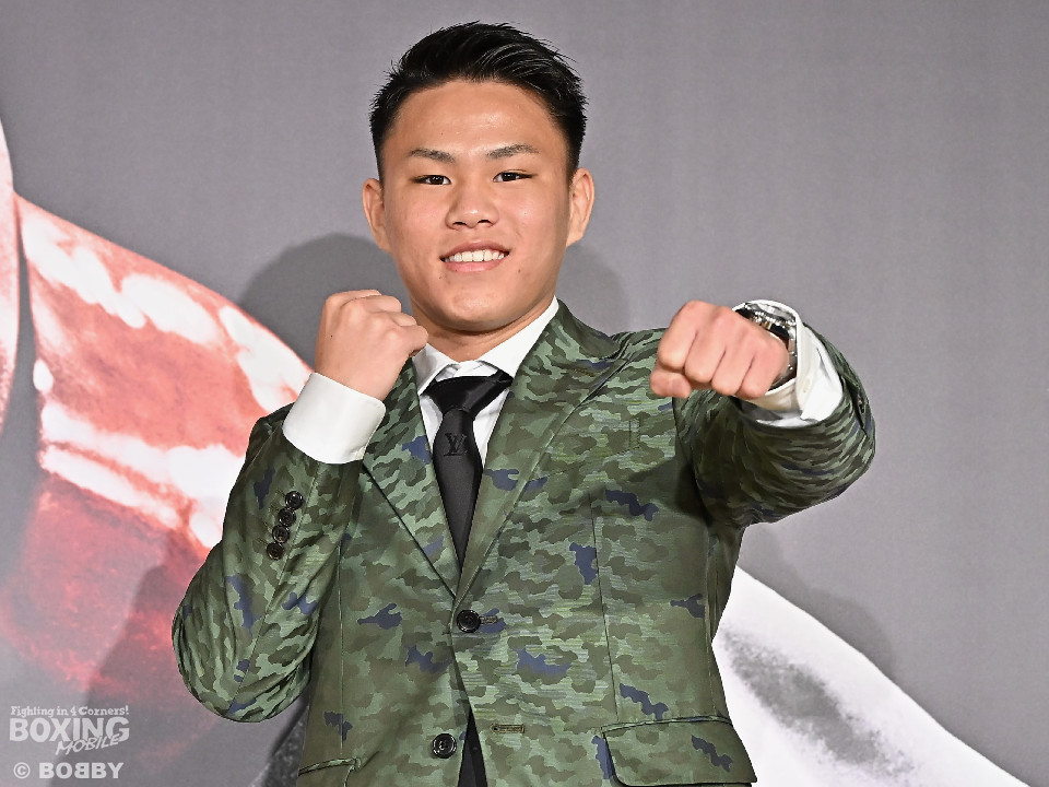 大橋秀行会長から「日本ボクシング界の至宝」と紹介された藤木勇我は、「The King」の愛称について「めちゃくちゃ気に入ってます。がんばります」と笑顔を見せた。