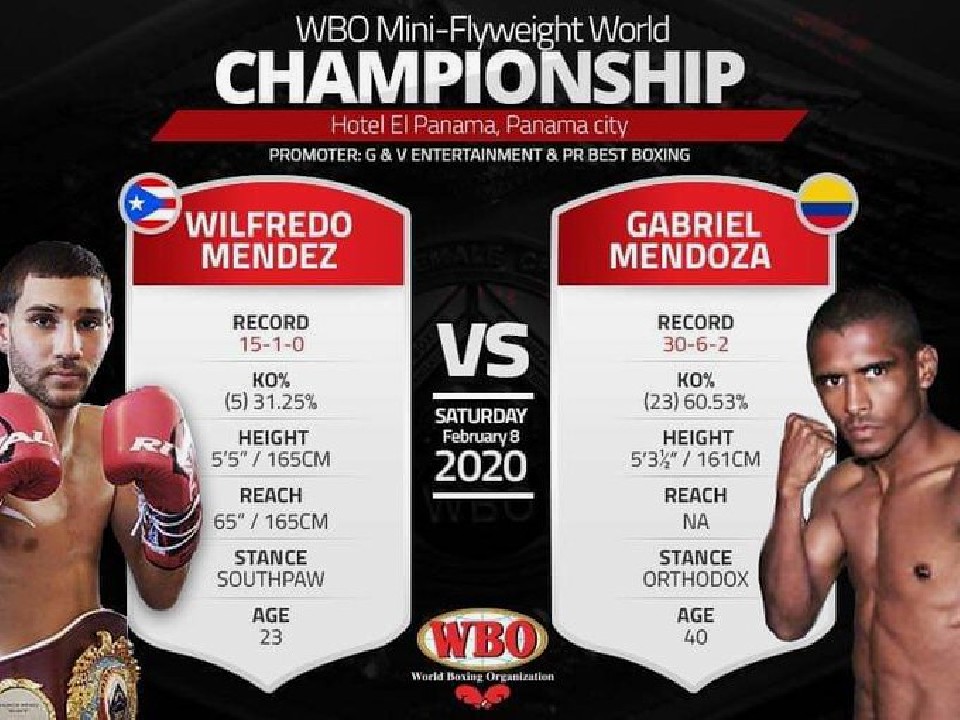 中米・パナマのパナマシティで開催されるWBO世界ミニマム級タイトルマッチは、同級リミット47.6kgを、V2戦となる王者メンデスが100g少ない47.5kgでクリア。これが世界3度目の挑戦となるWBO同級15位ガブリエル・メンドサ(コロンビア)はリミットの47.6kgで秤を下りた。