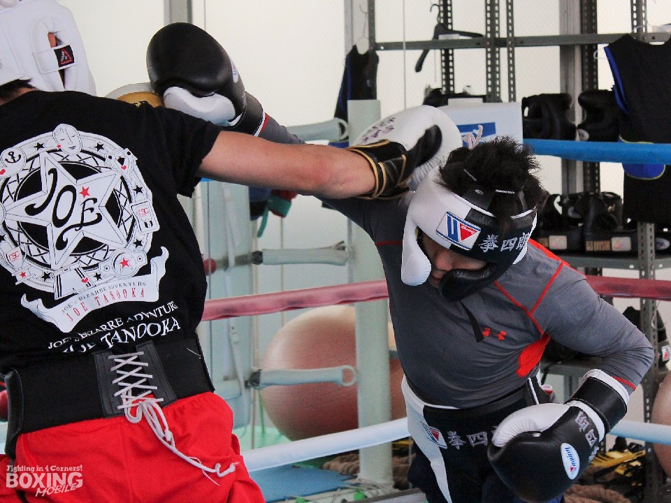 会見後には日本スーパーフライ級10位の田之岡条(小熊)との2ラウンドのスパーリングを披露。距離を意識しているという拳四朗は、常に足を動かし細かいステップでプレッシャーをかけると、相手のパンチに右ストレートを合わせ好調をアピールした。その後のサンドバッグ打ちでは、テンポの良いコンビネーションを打ち込んだ。