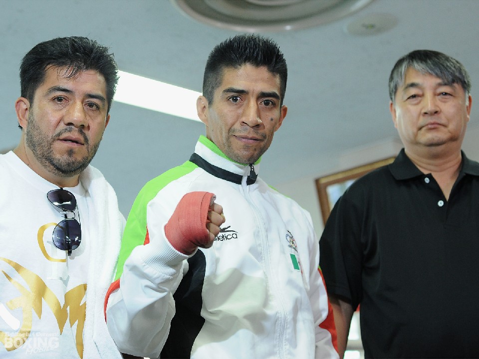 その後はメキシコで万全の準備をしてきたとして、ウォーミングアップから始まり、シャドーとパンチングボールを2ラウンドずつこなして公開練習を終了。キャリア15年のベテランは、視察に訪れた拳四朗の父・寺地永会長に手の内を見せることはなかった。