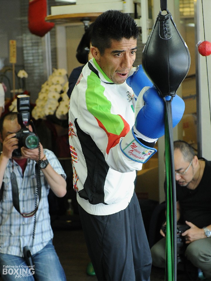 WBC(世界ボクシング評議会)ライトフライ級王者の拳四朗(26=BMB)に挑戦する同級1位のガニガン・ロペス(36=メキシコ)が21日、都内のジムで練習を公開。18日(金)に来日したロペスは、飛行機のトラブルによりメキシコの空港で7時間近く待たされ、疲れがいまだに残っているとして軽めの練習に終始した。