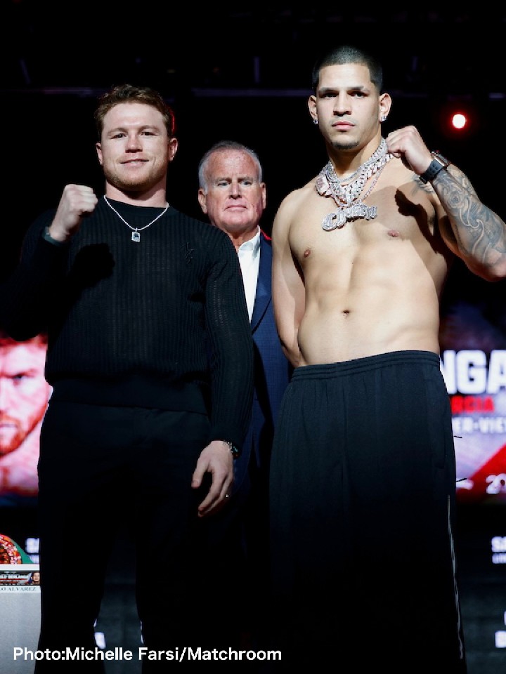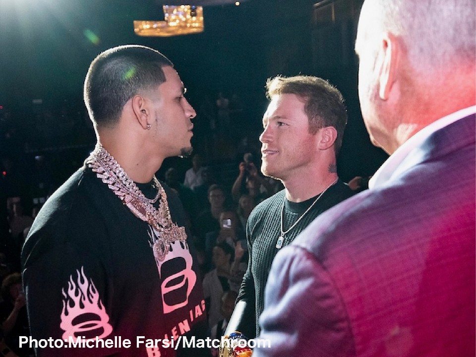 カネロは「私は、この立場にいることがとても嬉しいです。メキシコ対プエルトリコ、彼を過小評価していません。彼が強く若いファイターであることを知っています。私はトレーニングや試合で最善を尽くし、素晴らしい試合をします。私はボクシングが大好きで、自分の仕事が大好きで、ここにいられることが幸せです。この試合は素晴らしいものとなり、メキシコにとって9月14日は素晴らしい日になるでしょう」と絶対王者の貫禄を漂わせながらも、気を引き締めた。