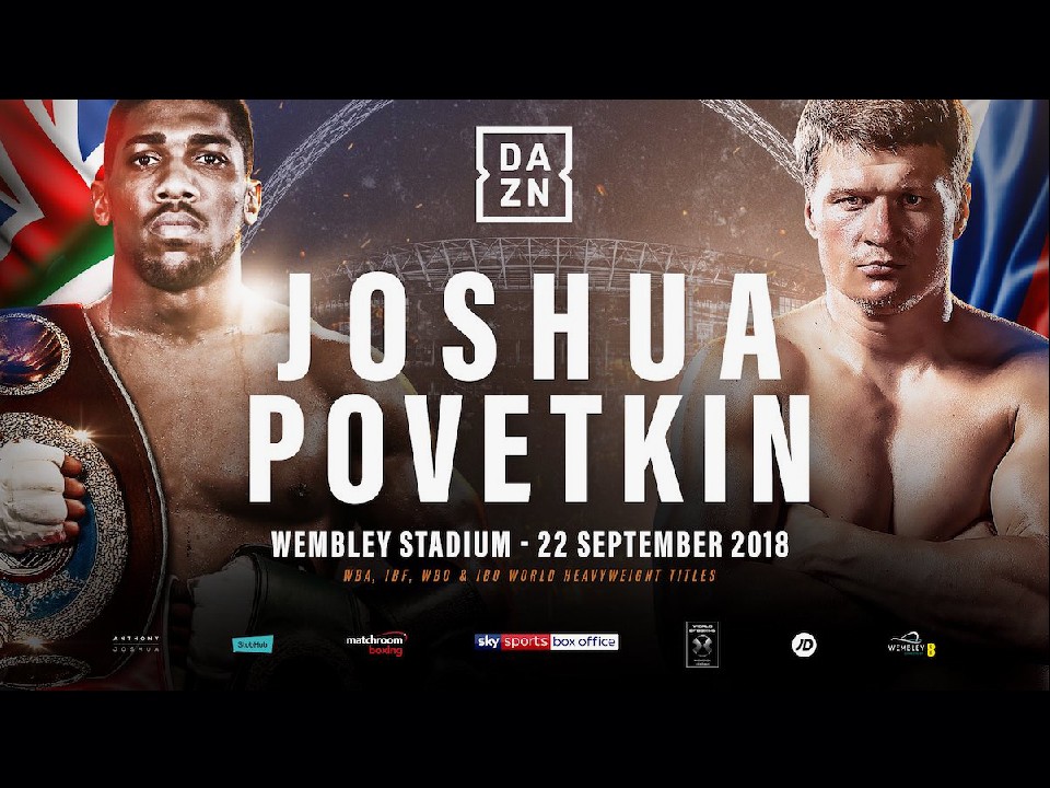 マッチールーム・ボクシングUSAのプロモーターであるエディ・ハーンは大型契約を交わしたDAZNのオープニング・イベントが、9月22日、WBA"スーパー"&IBF&WBOヘビー統一王者アンソニー・ジョシュア(28=英国)vsWBA&WBO1位、元世界王者アレクサンダル・ポベトキン(39=ロシア)の対戦がメインとなる英国・ロンドンのウェンブリー・スタジアムから始まると発表した。