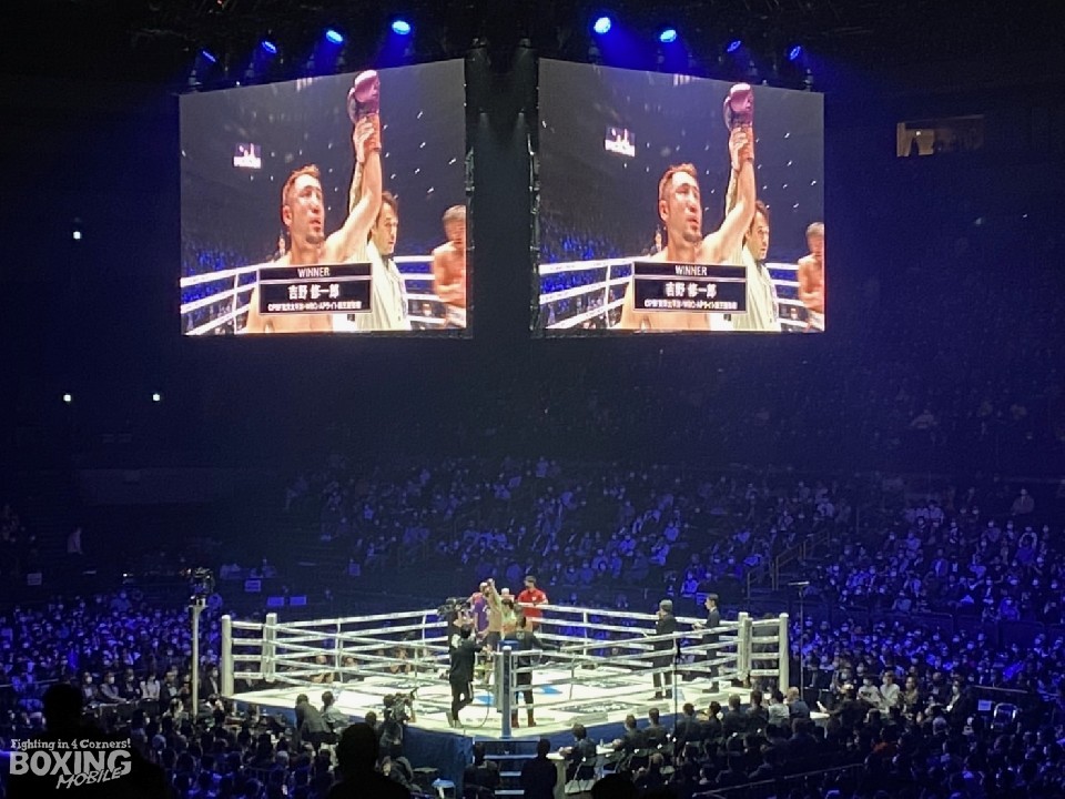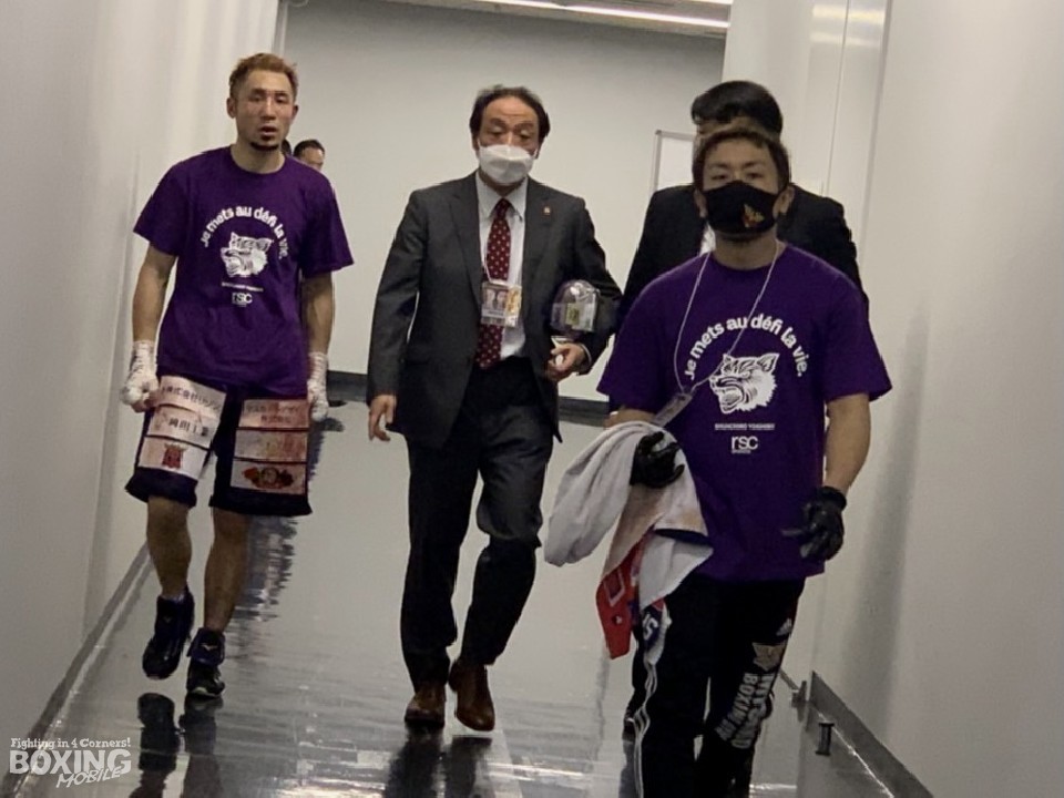安堵の表情で控室に戻った吉野は「序盤のジャブを意識した。流れで徐々に伊藤選手のパンチがわかってきた。セコンドの指摘通り、自分の打ち終わりを狙ってくるストレートがわかった」と、元世界チャンピオン伊藤との打ち合いを振り返った。伊藤の覚悟にも警戒していた吉野だが、「後半は下がってくれたが、接近戦でも圧倒して勝つのを見せたかった。思ったより体をくっつけてくるボディワークが上手くて、打ちたくても打てなかった」と、試合中の主導権争いに苦戦したことを明かした。
