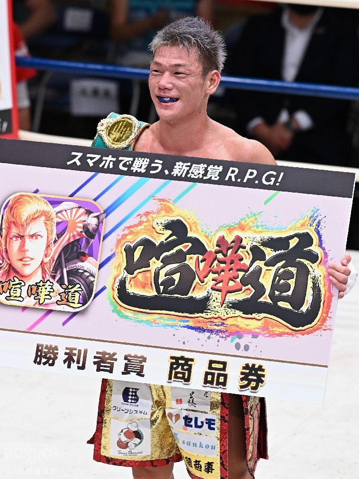 輪島功一スポーツから三迫ジムに移籍して、これが初戦の勅使河原は最高の形で締めくくった。前日計量後には、師匠の輪島功一会長に報告の電話を入れると「会場には行けないが、応援している」と激励されたという。